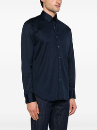 lightweight-jersey shirt Highlights - Navy blue - Cotton - Lightweight jersey - Front button fastening - Classic collar - Long sleeves - Buttoned cuffs - Curved hem Made in Italy Composition Cotton 100% SIZE & FIT Model measurements Height 6 ft 2 in(1.87 m) Bust/Chest 37.79 in(96 cm) Hips 37.79 in(96 cm) Waist 30.31 in(77 cm) Measurement CHEST 45.66 in(116 cm) SLEEVE LENGTH 36.61 in(93 cm) FittingInformation Designed for a slim fit, offering a comfortable fit that sits just away from the body Made from a lightweight non-stretch fabric, this piece offers minimal elasticity when worn
