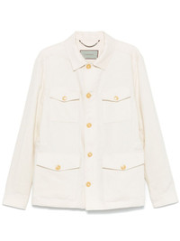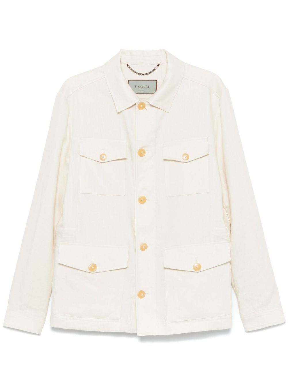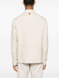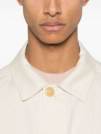 linen shirt jacket Highlights - Light beige - Front button fastening - Internal drawstring fastening waist - Four front flap pockets - Buttoned cuffs Made in Italy Composition Linen/Flax 100%, Goat Skin 100% SIZE & FIT Model measurements Height 6 ft 2 in(1.87 m) Bust/Chest 38.18 in(97 cm) Hips 36.61 in(93 cm) Waist 29.13 in(74 cm) FittingInformation Designed for a relaxed fit, this piece allows for comfort and movement when worn The adjustable drawstring means that you can adjust this piece’s fit to suit your comfort and preference Made from a midweight non-stretch fabric