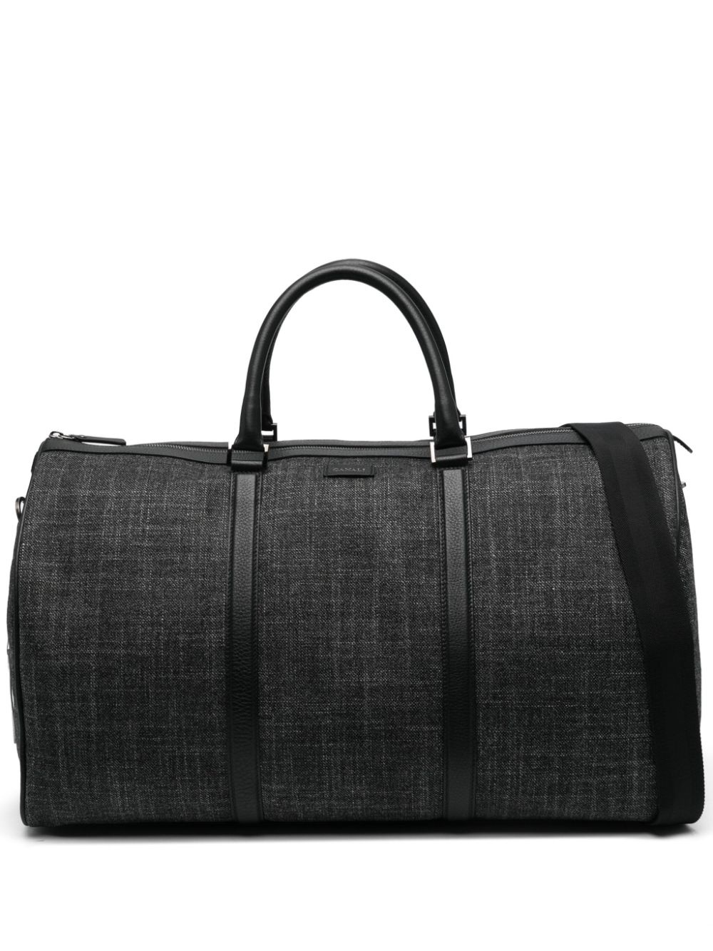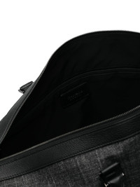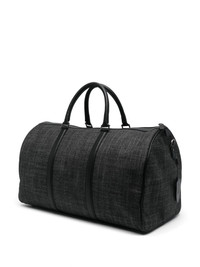 logo-patch duffle bag Highlights - Medium grey/black - Wool/leather trim - Interlock weave - Logo patch to the front - Top zip fastening - Two rolled top handles - Adjustable detachable shoulder strap - Main compartment - Internal zip-fastening pocket - Internal logo patch - Internal slip pockets - Full lining - This piece comes complete with a protective dust bag. Made in Italy Composition Outer: Wool 100%, Leather 100% SIZE & FIT Measurement DEPTH 10.62 in(27 cm) HANDLE 7.87 in(20 cm) HEIGHT 11.81 in(30 cm) STRAP 61.02 in(155 cm) WIDTH 20.47 in(52 cm)