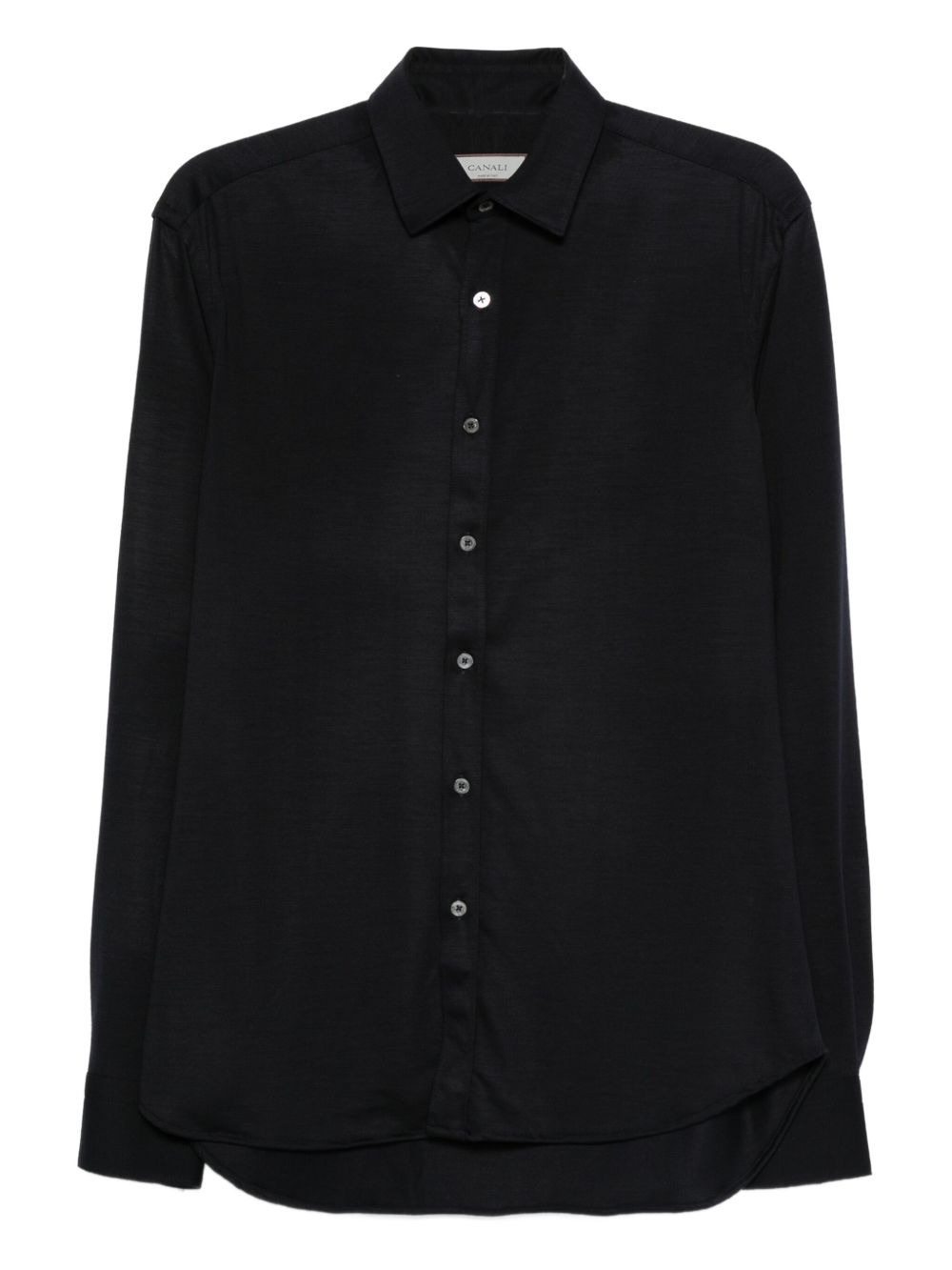 long-sleeve button-fastening shirt Highlights - Blue - Wool - Button fastening - Long sleeves - Curved hem - Classic collar Made in Italy Composition Wool 100% Washing instructions Machine Wash