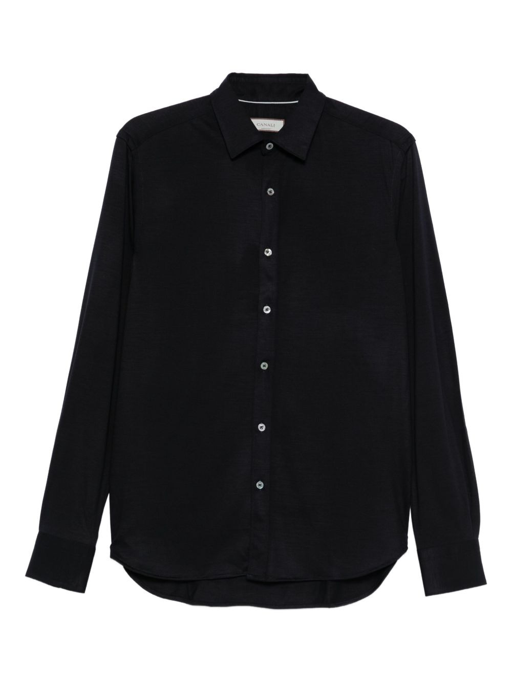 long-sleeve wool shirt Highlights - Blue - Wool - Button fastening - Long sleeves - Classic collar Made in Italy Composition Wool 100% Washing instructions Machine Wash