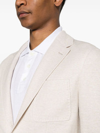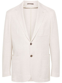 melange-effect single-breasted blazer Highlights - White/light beige - Cotton-linen blend - Melange effect - Notched lapels - Front button fastening - Long sleeves - Buttoned cuffs - Chest patch pocket - Two side patch pockets - Unlined - English rear vents - Straight hem Made in Italy Composition Outer: Cotton 51%, Linen/Flax 49% Lining: Acetate 65%, Polyester 35% SIZE & FIT Model measurements Height 6 ft 2 in(1.87 m) Bust/Chest 36.22 in(92 cm) Hips 37 in(94 cm) Waist 27.95 in(71 cm) FittingInformation Designed for a slim fit, offering a comfortable fit that sits just away from the body The vented hem offers movement at the rear Made from a midweight non-stretch fabric, this piece offers minimal elasticity when worn This piece fits true to size – take your usual size