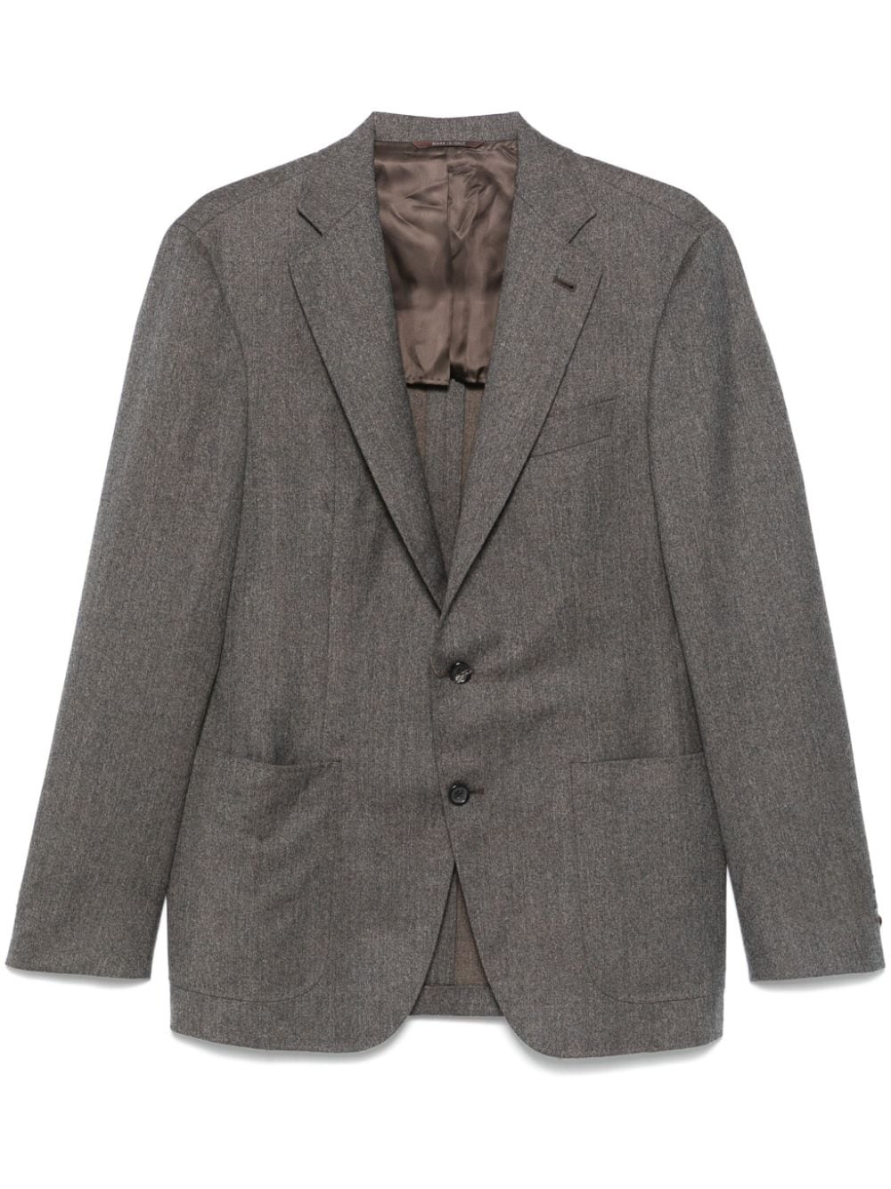 melange-effect blazer Highlights - Tobacco brown - Wool - Melange effect - Front button fastening - Notched lapels - Chest welt pocket - Long sleeves - Buttoned cuffs - Two side patch pockets - English rear vents - Partial lining - Straight hem Made in Italy Composition Lining: Cupro 100% Outer: Wool 100% SIZE & FIT Model measurements Height 6 ft 1 in(1.85 m) Bust/Chest 35.82 in(91 cm) Hips 37.79 in(96 cm) Waist 29.13 in(74 cm) FittingInformation Designed for a slim fit, offering a comfortable fit that sits just away from the body The vented hem offers movement at the rear Made from a midweight non-stretch fabric