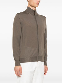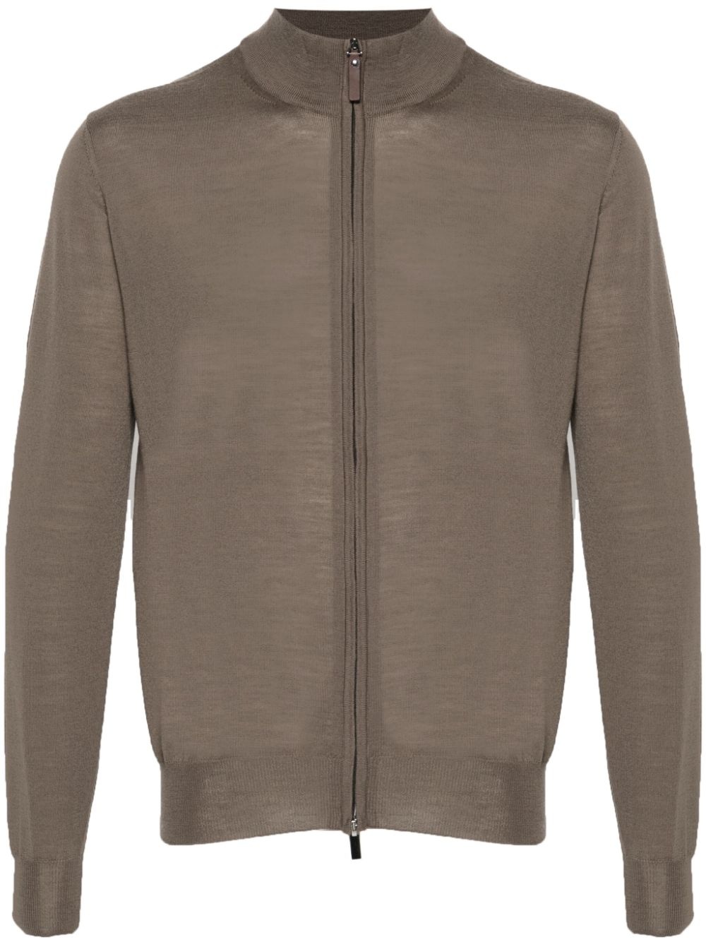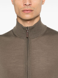 merino wool cardigan Highlights - Taupe brown - Merino wool - Fine knit - Front two-way zip fastening - Ribbed trim - High neck - Long sleeves - Straight hem Made in Italy Composition Merino 100% SIZE & FIT Model measurements Height 6 ft 1 in(1.85 m) Bust/Chest 35.82 in(91 cm) Hips 37.79 in(96 cm) Waist 29.13 in(74 cm) Measurement CHEST 47.24 in(120 cm) Shoulder Width 17.71 in(45 cm) FittingInformation Designed for a slim fit, offering a comfortable fit that sits just away from the body The ribbed hem offers a close, comfortable fit Made with a lightweight knit, this piece offers some stretch Washing instructions Hand Wash