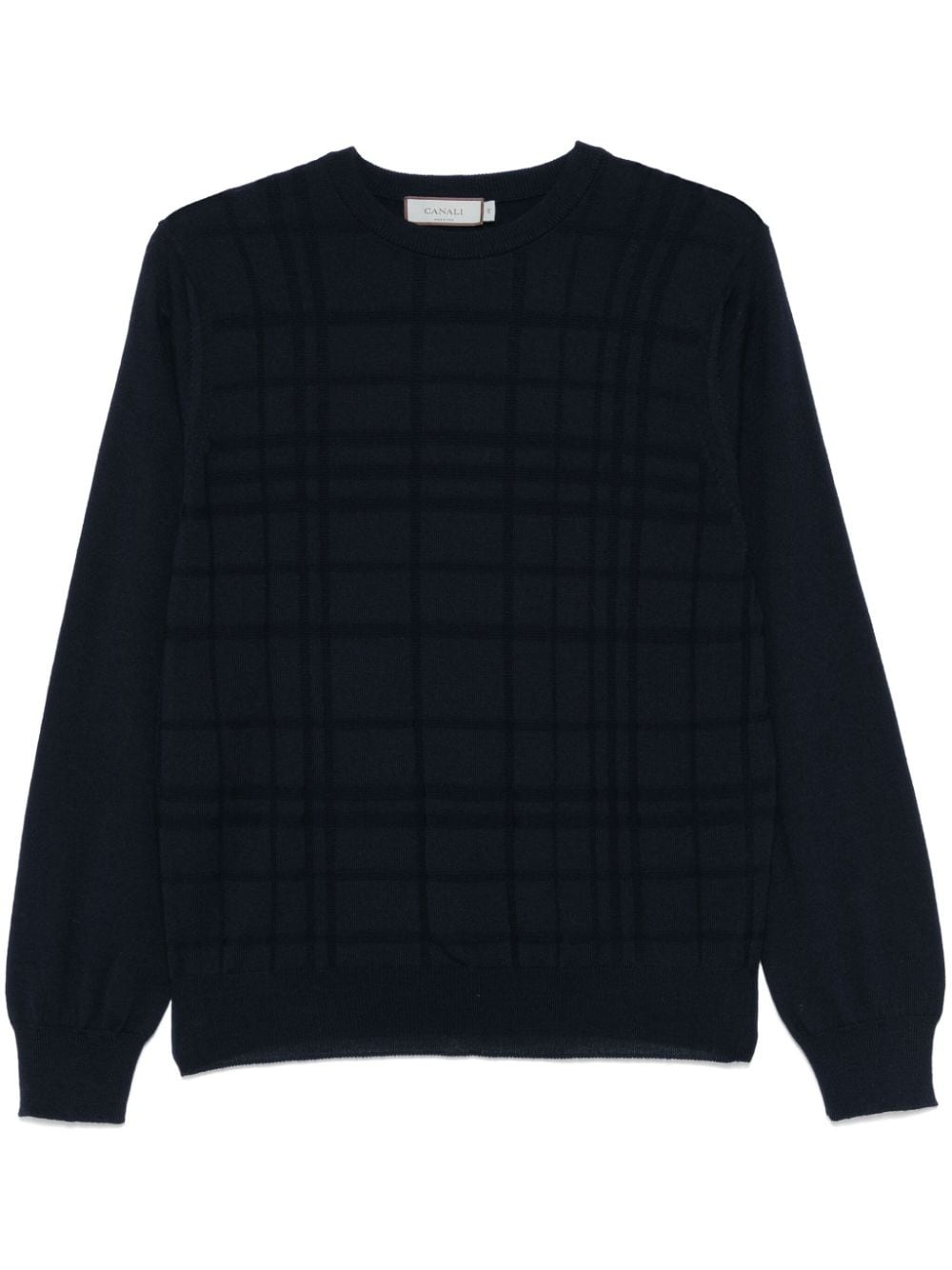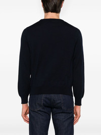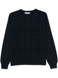 merino-wool sweater Highlights - Navy blue - Merino wool - Patterned jacquard - Crew neck - Long sleeves - Ribbed cuffs and hem Made in Italy Composition Merino 100% SIZE & FIT Model measurements Height 6 ft 2 in(1.87 m) Bust/Chest 37.79 in(96 cm) Hips 37.79 in(96 cm) Waist 30.31 in(77 cm) FittingInformation Designed for a regular fit, offering a comfortable loose fit throughout the body The ribbed hem offers a close, comfortable fit Made with a midweight knit, this piece offers some stretch