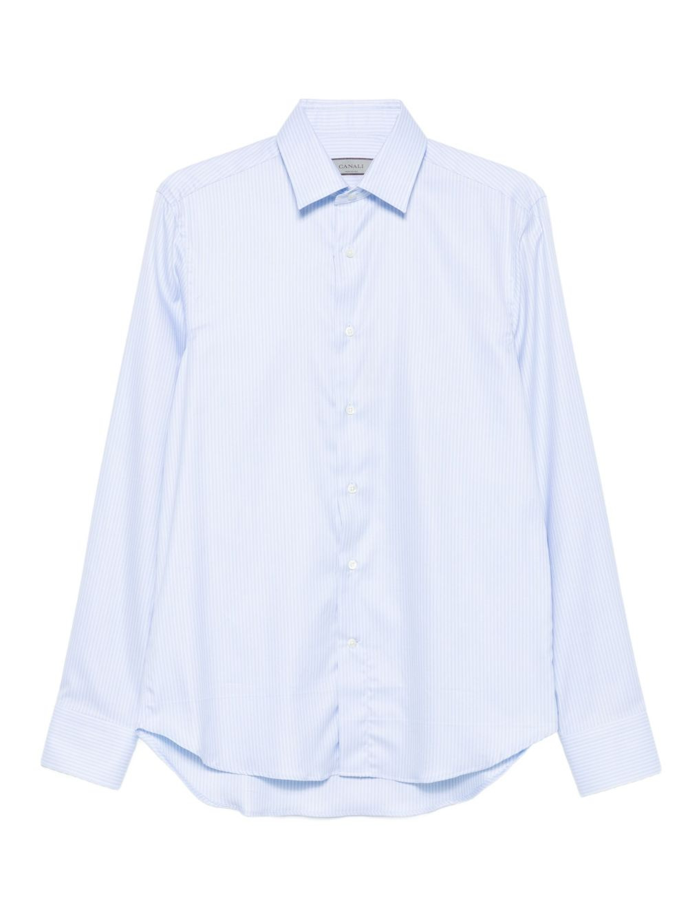 pinstripe cotton shirt Highlights - Light blue - Pinstripe pattern - Long sleeves - Button fastening - Curved hem Made in Italy Composition Cotton 100% Washing instructions Machine Wash