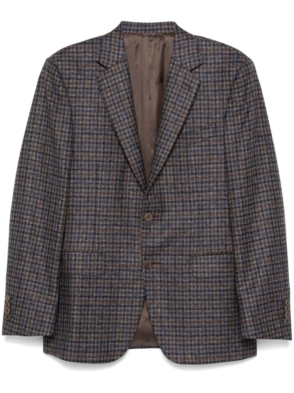 plaid-check blazer Highlights - Barley brown/imperial blue - Wool - Plaid check pattern - Front button fastening - Notched lapels - Shoulder pads - Long sleeves - Faux-buttoned cuffs - Chest welt pocket - Dart detailing - Two front flap pockets - English rear vents - Multiple internal slip pockets - Full lining - Curved hem Made In Italy Composition Outer: Wool 100% Lining: Cupro 100% SIZE & FIT Model measurements Height 6 ft 2 in(1.87 m) Bust/Chest 37.79 in(96 cm) Hips 37.79 in(96 cm) Waist 30.31 in(77 cm) FittingInformation Designed for a slim fit, offering a comfortable fit that sits just away from the body The vented hem offers movement at the rear Made from a midweight non-stretch fabric