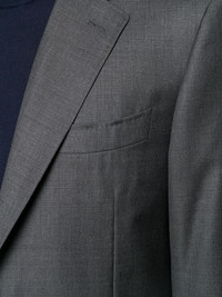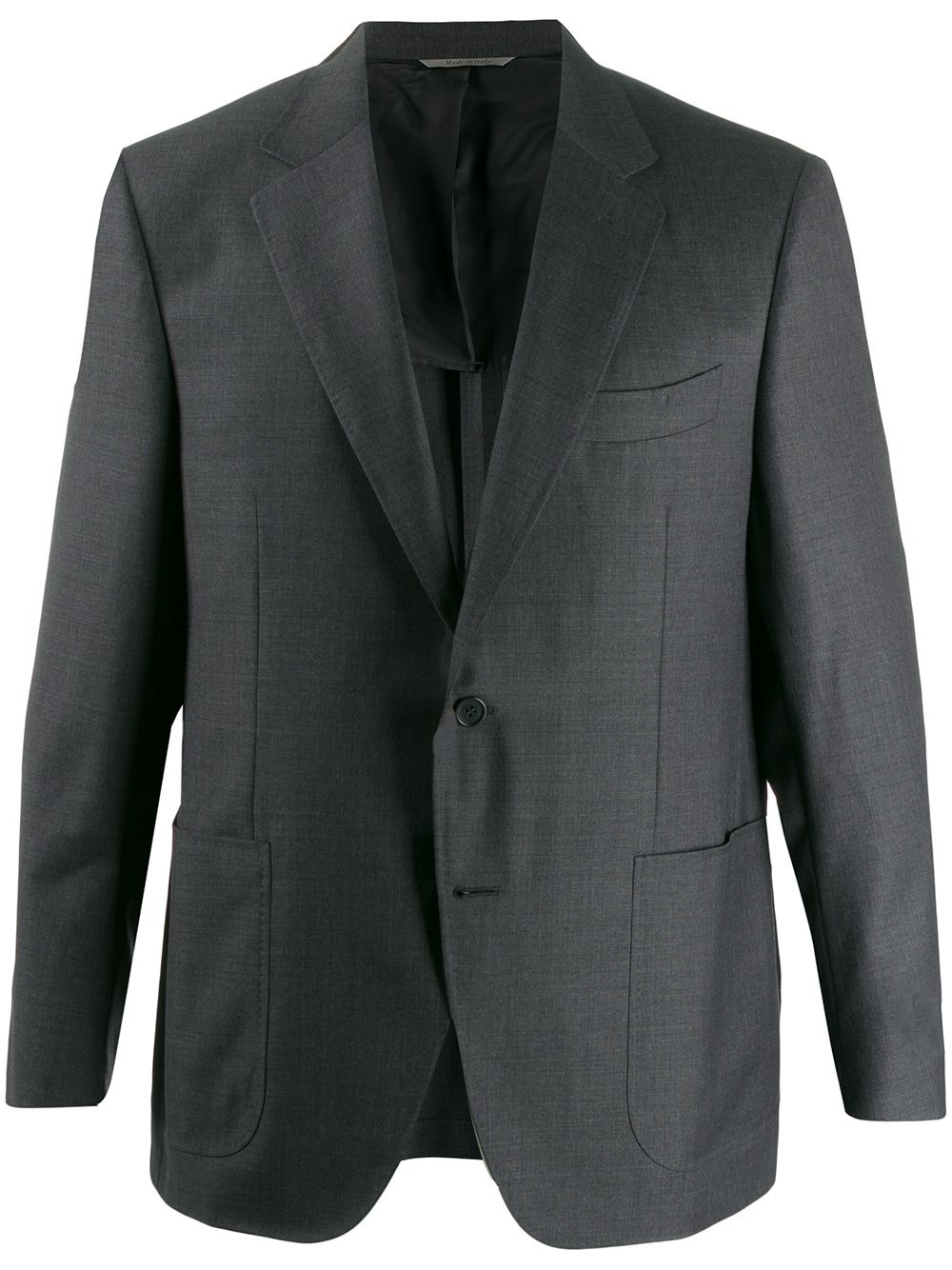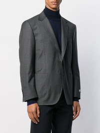 plain formal blazer Grey wool plain formal blazer from Canali featuring classic lapels, a broad welt chest pocket, a front button fastening, two front pockets, a curved hem, a double vent to the rear and faux button cuffs. Made in Italy Composition Lining: Cupro 100% Outer: Wool 100% SIZE & FIT Model measurements Height 6 ft 2 in(1.87 m) Bust/Chest 38.18 in(97 cm) Hips 36.61 in(93 cm) Waist 29.13 in(74 cm) FittingInformation This piece fits true to size. We recommend you get your regular size Classic fit Made with a mid-weight fabric Washing instructions Dry Clean Only