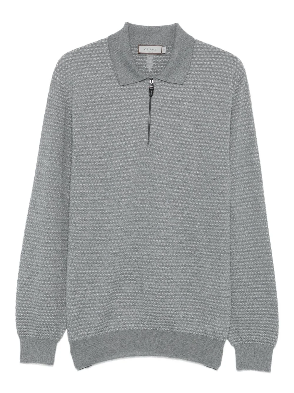 polo-collar merino wool sweater Highlights - Light grey - Polo collar - Half zip fastening - Long sleeves - Ribbed cuffs - Ribbed hem Made in Italy Composition Merino 100% SIZE & FIT Model measurements Height 6 ft 1 in(1.85 m) Bust/Chest 38.58 in(98 cm) Hips 37 in(94 cm) Waist 30.31 in(77 cm) Washing instructions Hand Wash