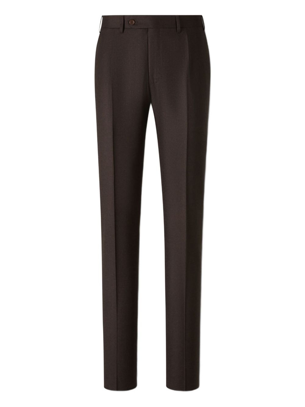 pressed-crease trousers Highlights - Dark brown - Pressed creases - Front button fastening - Rear welt pockets - Straight leg - Belt loops Made in Italy Composition Wool 95%, Spandex/Elastane 5% Washing instructions Read Manufacturer Guidelines