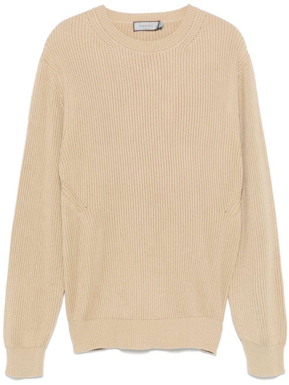 ribbed-knit sweater Highlights - Light brown - Crew neck - Long sleeves - Ribbed cuffs and hem Made in Italy Composition Cotton 50%, Modal 50% SIZE & FIT Model measurements Height 6 ft 1 in(1.86 m) Bust/Chest 36.61 in(93 cm) Hips 37 in(94 cm) Waist 28.74 in(73 cm) FittingInformation Designed for a relaxed fit, this piece allows for comfort and movement when worn The ribbed hem offers a close, comfortable fit Made with a midweight knit, this piece offers some stretch