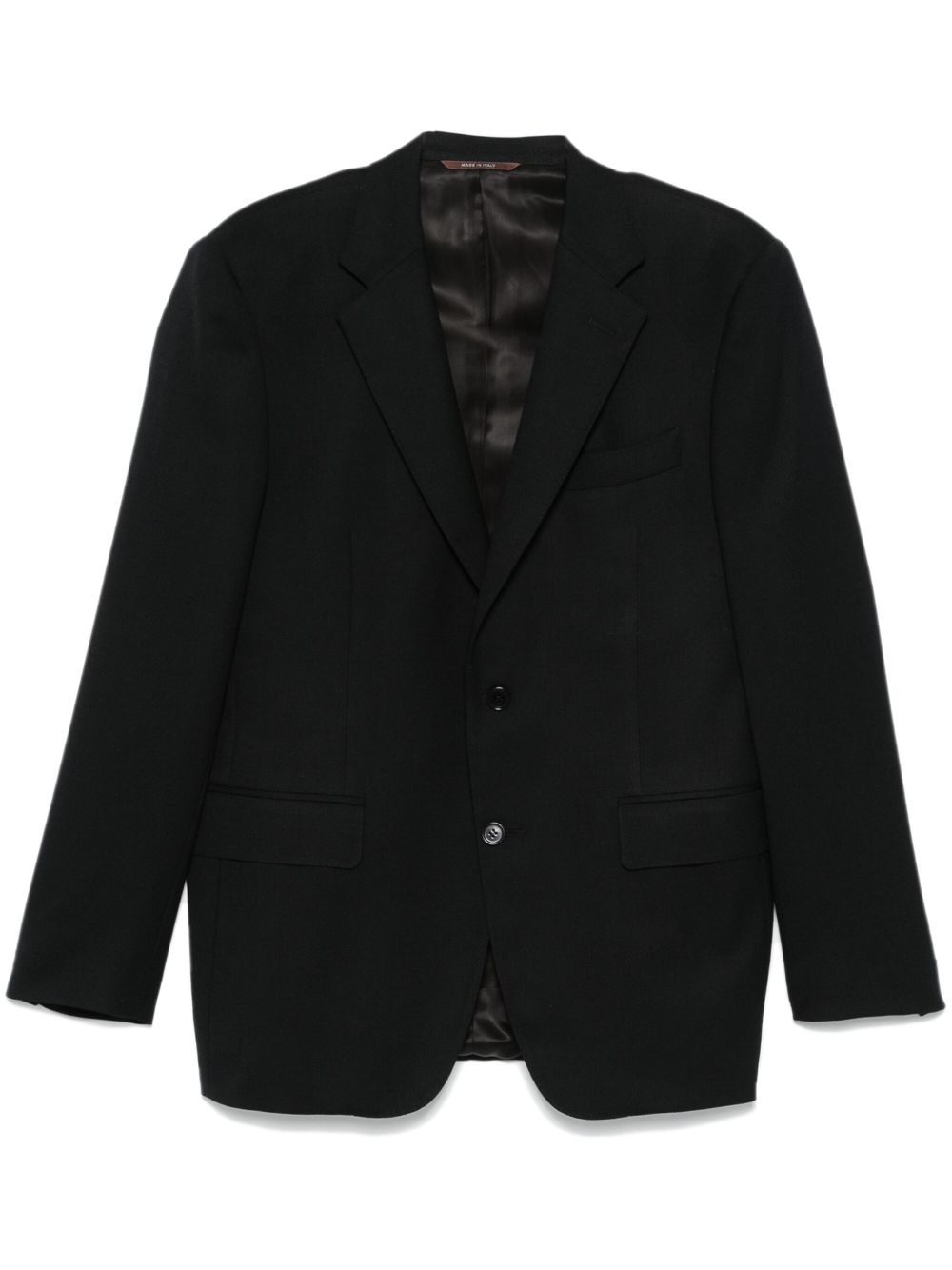 single-breasted blazer Highlights - Black - Wool blend - Interwoven design - Front button fastening - Notched lapels - Shoulder pads - Long sleeves - Buttoned cuffs - Chest welt pocket - Dart detailing - Two side flap pockets - English rear vents - Multiple internal slip pockets - Full lining - Straight hem Made in Italy Composition Lining: Cupro 100% Outer: Wool 99%, Elastane 1% SIZE & FIT Model measurements Height 6 ft 1 in(1.85 m) Bust/Chest 35.82 in(91 cm) Hips 37.79 in(96 cm) Waist 29.13 in(74 cm) FittingInformation Designed for a slim fit, offering a comfortable fit that sits just away from the body The vented hem offers movement at the rear Made from a midweight fabric Washing instructions Dry Clean Only