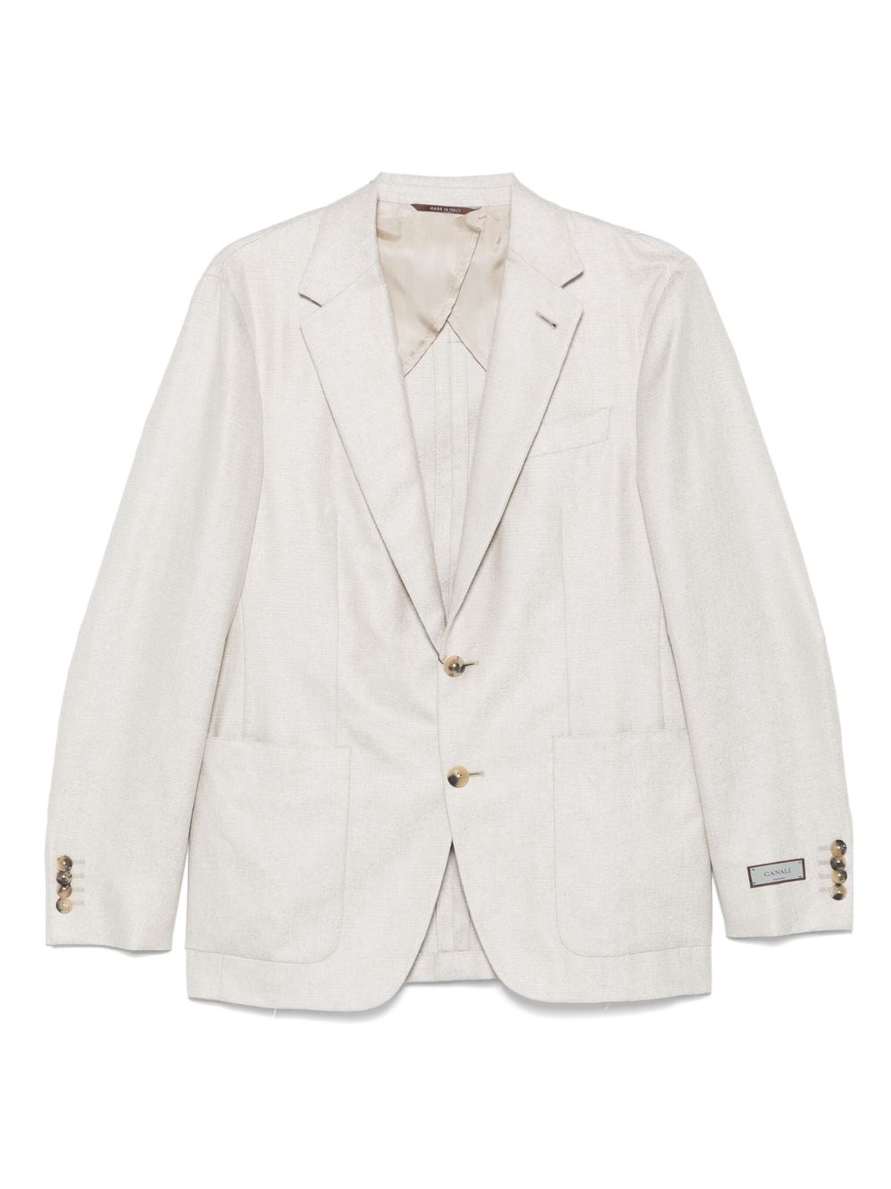 single-breasted blazer Highlights - Sesame beige - Front button fastening - Chest welt pocket - English rear vents - Internal slip pocket Made in Italy Composition Lining: Cupro 100% Outer: Silk 52%, Cashmere 48% SIZE & FIT Model measurements Height 6 ft 0 in(1.84 m) Bust/Chest 37.79 in(96 cm) Hips 37 in(94 cm) Waist 31.49 in(80 cm) FittingInformation Designed for a slim fit, offering a comfortable fit that sits just away from the body The vented hem offers movement at the rear Made from a midweight non-stretch fabric