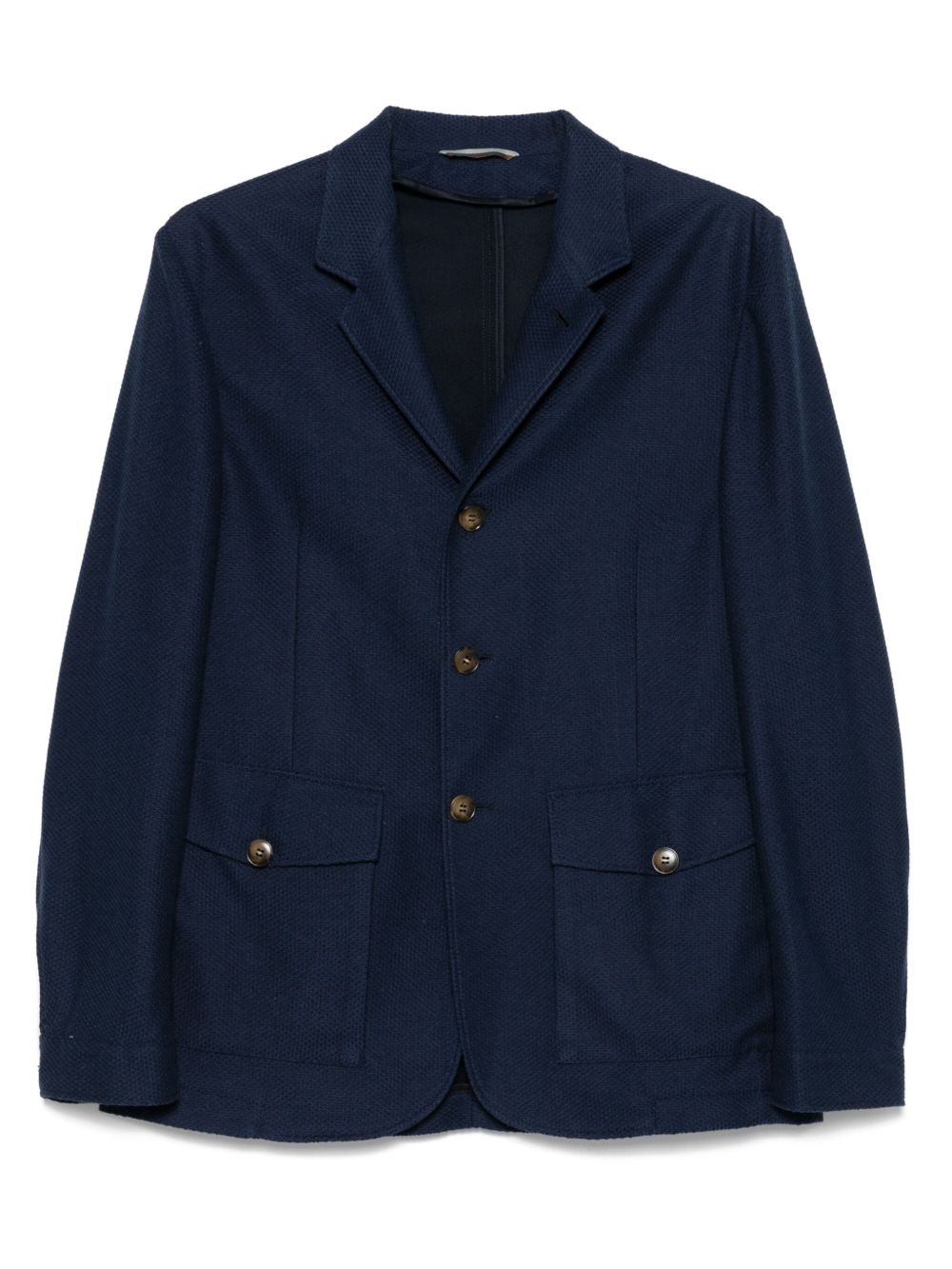 single-breasted blazer Highlights - Navy blue - Front button fastening - Two front flap pockets - Buttoned cuffs - Long sleeves Made in Italy Composition Lining: Acetate 65%, Polyester 35% Outer: Cotton 85%, Cashmere 15% SIZE & FIT Model measurements Height 6 ft 0 in(1.84 m) Bust/Chest 37.79 in(96 cm) Hips 37 in(94 cm) Waist 31.49 in(80 cm) FittingInformation Designed for a regular fit, allowing for a comfortably loose fit throughout the body Made from a midweight non-stretch fabric, this piece offers minimal elasticity when worn