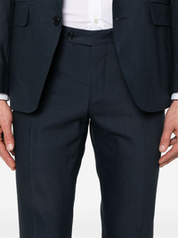 single-breasted suit Highlights - Navy blue Made in Italy Composition Lining: Cupro 100% Outer: Linen/Flax 52%, Wool 48% SIZE & FIT Model measurements Height 6 ft 2 in(1.87 m) Bust/Chest 37.79 in(96 cm) Hips 37.79 in(96 cm) Waist 30.31 in(77 cm) FittingInformation Tailored for a slim fit, offering a comfortable fit that sits just away from the body The unfinished hems allow for the length to be altered Made from a midweight non-stretch fabric