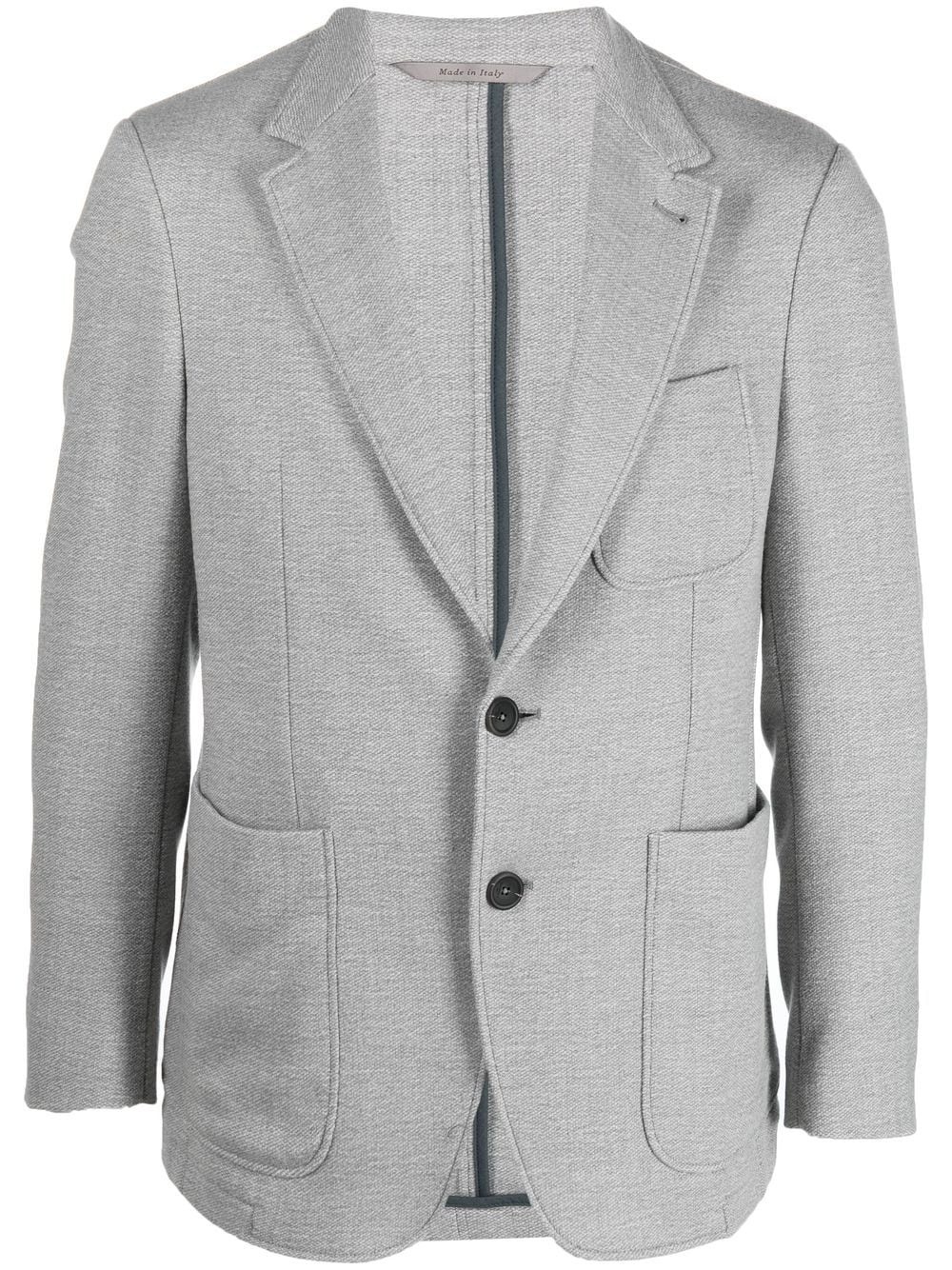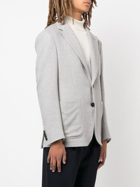 single-breasted wool blazer light grey wool notched lapels front button fastening chest patch pocket two front patch pockets long sleeves buttoned cuffs English rear vents Made in Italy Composition Lining: Polyester 100% Outer: Wool 100% SIZE & FIT Model measurements Height 6 ft 2 in(1.88 m) Bust/Chest 35.43 in(90 cm) Hips 36.61 in(93 cm) Waist 27.95 in(71 cm) FittingInformation This piece fits true to size. We recommend you get your regular size Cut for a slim fit Made with a mid-weight fabric Washing instructions Dry Clean Only