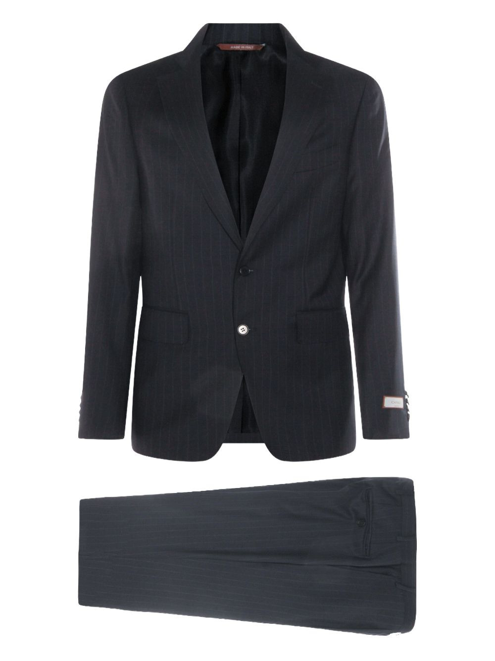 stripe-pattern wool suit Highlights - Blue - Stripe pattern - Single breasted - Button fastening - Flap pockets - Welt pocket Made in Italy Composition Wool 100% Washing instructions Read Manufacturer Guidelines