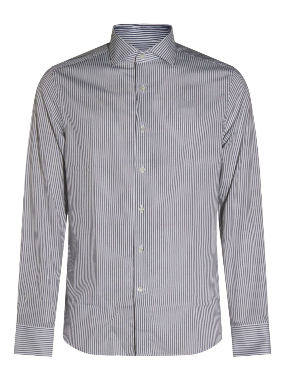 striped-pattern long-sleeve shirt Highlights - Grey - Vertical stripes - Button fastening - Pointed collar - Long sleeves - Buttoned cuffs Made in Italy Composition Cotton 100% Washing instructions Read Manufacturer Guidelines
