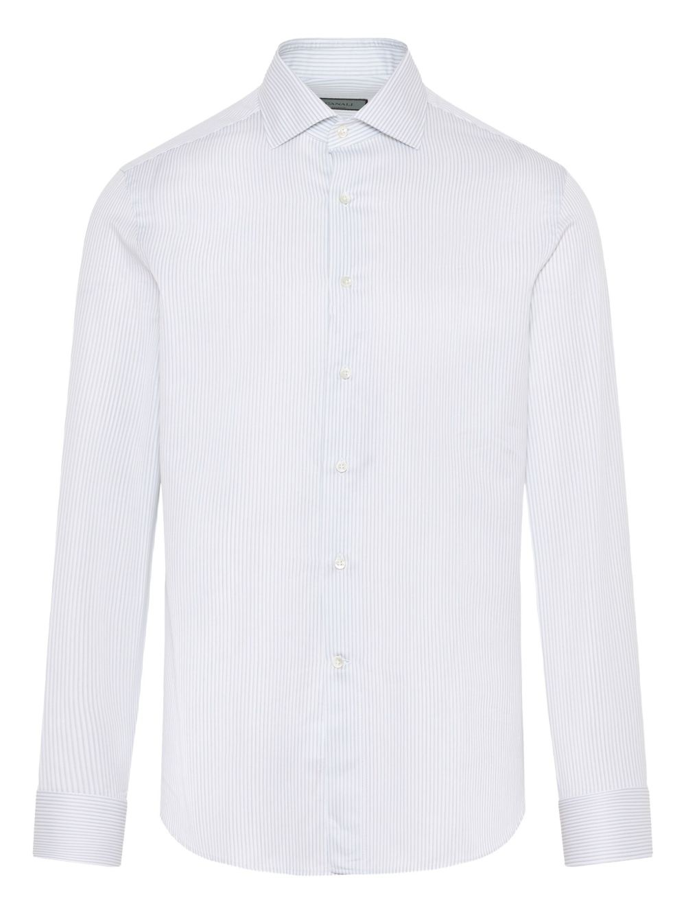 striped shirt Highlights - Light blue - Front button fastening - Buttoned cuffs - Spread collar - Long sleeves Made in Italy Composition Cotton 80%, Polyamide 18%, Elastane 2%