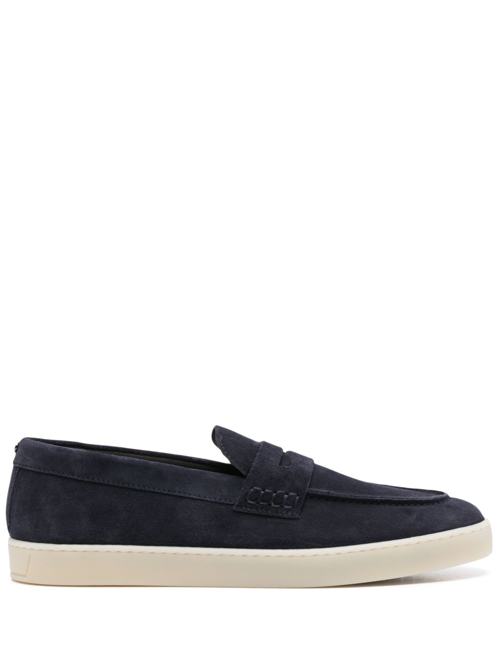 suede loafers Highlights - Navy blue - Contrasting rubber sole - Branded leather insole - Penny slot Made in Italy Composition Outer: Suede 100% Sole: Rubber 100% Lining: Leather 100%
