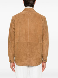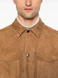suede shirt jacket Highlights - Camel brown - Lambskin - Suede - Front press-stud fastening - Classic collar - Long sleeves - Press-stud fastening cuffs - Two chest flap pockets - Two side welt pockets - Full lining - Straight hem Made in Italy Composition Lining: Polyester 100%, Cotton 100% Outer: Lamb Skin 100% SIZE & FIT Model measurements Height 6 ft 2 in(1.87 m) Bust/Chest 37.79 in(96 cm) Hips 37.79 in(96 cm) Waist 30.31 in(77 cm) FittingInformation Designed for a regular fit, allowing for a comfortably loose fit throughout the body Suede leather has a soft and treated construction offering some flexibility
