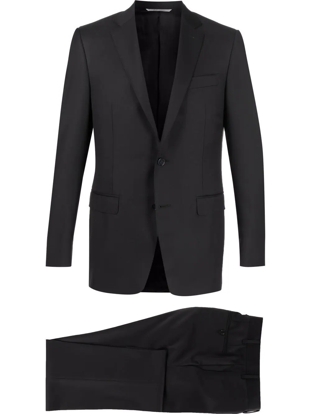 tailored single-breasted suit black wool Jacket: tailored cut notched lapels chest welt pocket two front flap pockets front button fastening long sleeves buttoned cuffs English rear vents Bottoms: tailored cut pressed crease two diagonal pockets to the sides two rear button-fastening jetted pockets belt loops concealed front fastening Made in Italy Composition Lining: Cupro 100% Outer: Wool 100% SIZE & FIT Model measurements Height 6 ft 1 in(1.85 m) Bust/Chest 35.82 in(91 cm) Hips 37.79 in(96 cm) Waist 29.13 in(74 cm) FittingInformation This piece fits true to size. We recommend you get your regular size Cut for a slim fit Made with a mid-weight non-stretch fabric Washing instructions Dry Clean Only