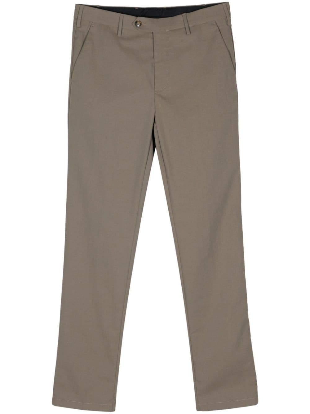 tailored trousers Highlights - Taupe brown - Gabardine weave - Tailored design - Belt loops - Front button and zip fastening - Tapered leg - Two side slit pockets - Two rear button-fastening jetted pockets - Straight hem Made in Italy Composition Polyester 100% SIZE & FIT FittingInformation Designed for a slim tapered leg, offering a close fit that sits just away from the leg with a closer fit towards the ankle Made from a midweight stretch fabric, this piece offers elasticity and flexibility when worn Washing instructions Machine Wash
