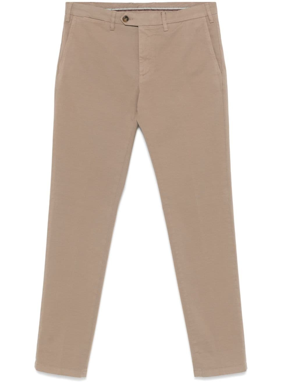 tapered trousers Highlights - Light brown - Cotton blend - Twill weave - Tapered leg - Front button and zip fastening - Belt loops - Coin pocket - Two diagonal pockets to the sides - Pressed crease - Two rear button-fastening jetted pockets Made in Italy Composition Outer: Cotton 96%, Elastane 4% Lining: Cotton 100% SIZE & FIT Model measurements Height 6 ft 2 in(1.88 m) Bust/Chest 36.61 in(93 cm) Hips 35.82 in(91 cm) Waist 27.95 in(71 cm) FittingInformation Designed for a slim fit, offering a comfortable fit that sits just away from the leg Made from a midweight non-stretch fabric