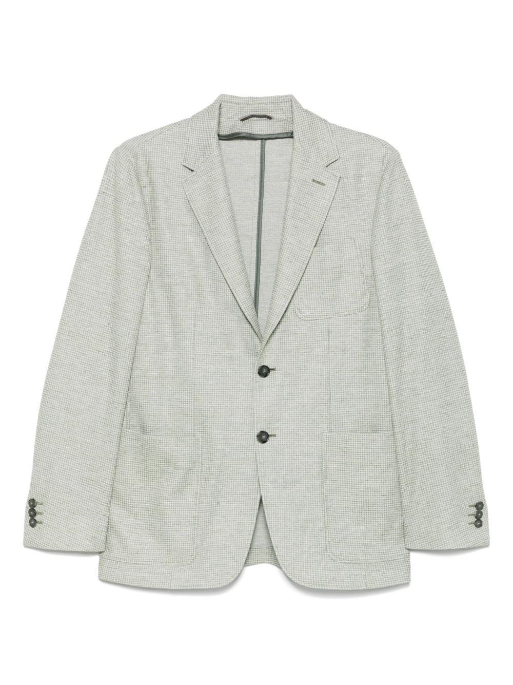 textured blazer Highlights - Mint green Made In Italy Composition Outer: Cotton 85%, Linen/Flax 15% Lining: Acetate 65%, Polyester 35% SIZE & FIT Model measurements Height 6 ft 0 in(1.84 m) Bust/Chest 37.79 in(96 cm) Hips 37 in(94 cm) Waist 31.49 in(80 cm) FittingInformation Designed for a slim fit, offering a comfortable fit that sits just away from the body The vented hem offers movement at the rear Made from a midweight non-stretch fabric