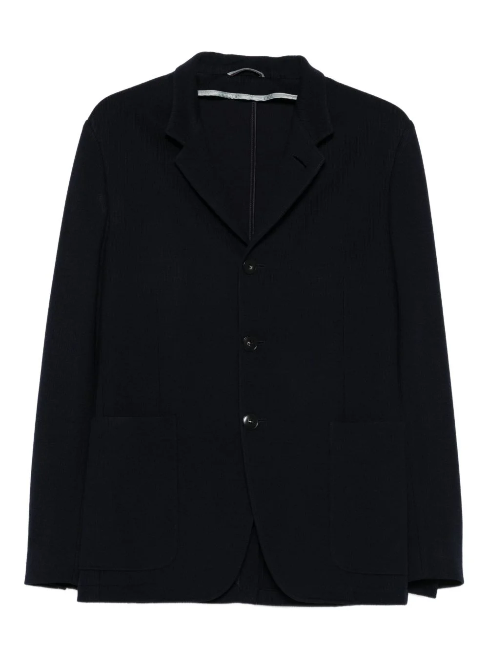 three-button patch-pocket blazer Highlights - Dark blue - Three-button fastening - Patch pockets - Notched lapel - Long sleeves - Straight hem Made in Italy Composition Lining: Acetate 65%, Polyester 35% Outer: Wool 64%, Cotton 36% SIZE & FIT Model measurements Height 6 ft 2 in(1.88 m) Bust/Chest 37.4 in(95 cm) Hips 38.58 in(98 cm) Waist 31.1 in(79 cm) Washing instructions Dry Clean Only