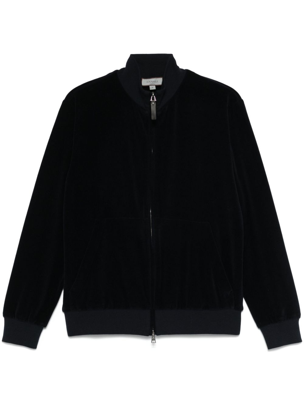 velvet sweatshirt Highlights - Navy blue - Jersey texture - Velvet finish - Front two-way zip fastening - Ribbed stand-up collar - Long sleeves - Two front pouch pockets - Patch detail - Ribbed cuffs and hem Made in Italy Composition Polyester 61%, Cotton 39% SIZE & FIT Model measurements Height 6 ft 2 in(1.87 m) Bust/Chest 36.22 in(92 cm) Hips 35.43 in(90 cm) Waist 29.13 in(74 cm) FittingInformation Designed for a regular fit, offering a comfortable loose fit throughout the body The ribbed hem offers a close, comfortable fit Made from a midweight non-stretch fabric, this piece offers minimal elasticity when worn