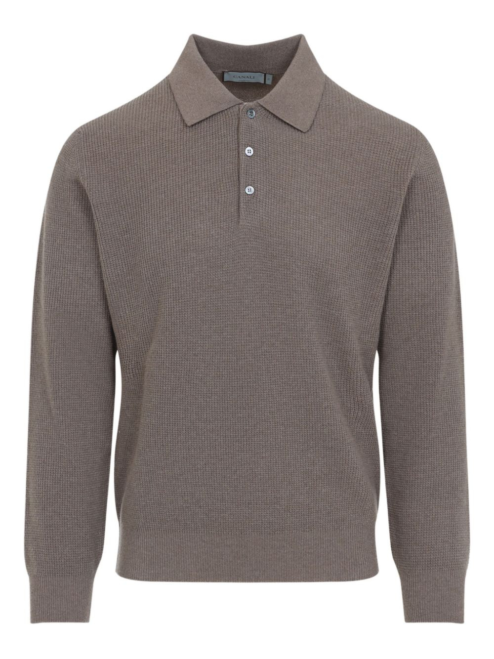 waffle-knit polo shirt Highlights - Grey - Waffle knit - Long sleeves - Polo collar - Button fastening - Ribbed trims Made in Italy Composition Wool 100% Washing instructions Read Manufacturer Guidelines