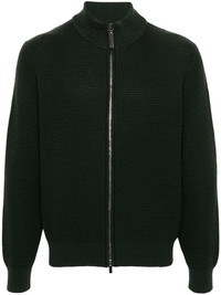 waffle-knit wool cardigan Highlights - Dark green - Wool - Waffle knit - Ribbed high neck - Long sleeves - Ribbed cuffs and hem - Front two-way zip fastening Made in Italy Composition Wool 100% SIZE & FIT Model measurements Height 6 ft 2 in(1.88 m) Bust/Chest 35.03 in(89 cm) Hips 35.82 in(91 cm) Waist 27.95 in(71 cm) FittingInformation Designed for a relaxed fit, this piece allows for comfort and movement when worn The ribbed hem offers a close, comfortable fit Made with a midweight knit, this piece offers some stretch This piece fits true to size – take your usual size