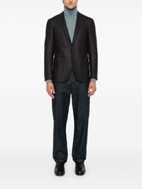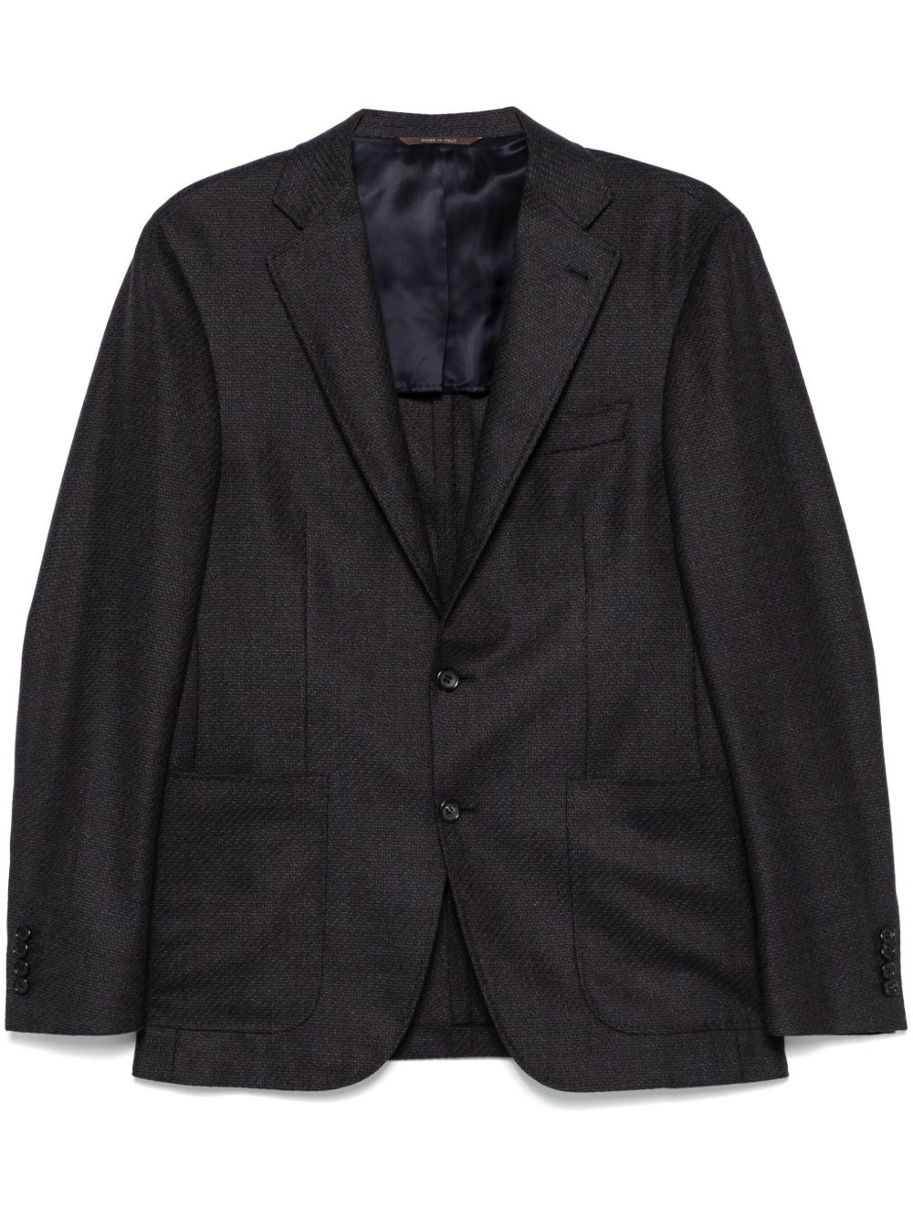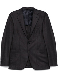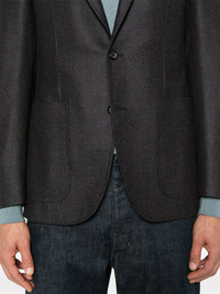 wool blazer Highlights - Navy blue/dark brown - Wool - Front button fastening - Diagonal stripe pattern - Notched lapels - Long sleeves - Buttoned-cuff sleeves - Chest welt pocket - Two side patch pockets - English rear vents - Multiple internal slip pockets - Partial lining - Straight hem Made in Italy Composition Lining: Cupro 100% Outer: Wool 100% SIZE & FIT Model measurements Height 6 ft 2 in(1.87 m) Bust/Chest 37.79 in(96 cm) Hips 37.79 in(96 cm) Waist 30.31 in(77 cm) FittingInformation Designed for a slim fit, offering a comfortable fit that sits just away from the body The vented hem offers movement at the rear Made from a midweight non-stretch fabric Washing instructions Dry Clean Only