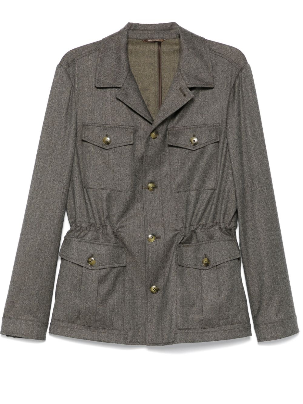 wool shirt jacket Highlights - Medium grey - Wool - Front button fastening - Classic collar - Long sleeves - Buttoned-cuff sleeves - Four front flap pockets - Drawstring waist - Central rear vent - Unlined - Straight hem Made in Italy Composition Lining: Viscose 63%, Polyester 37% Outer: Wool 100% SIZE & FIT Model measurements Height 6 ft 2 in(1.87 m) Bust/Chest 37.79 in(96 cm) Hips 37.79 in(96 cm) Waist 30.31 in(77 cm) FittingInformation Designed for a relaxed fit, this piece allows for comfort and movement when worn The adjustable drawstring means that you can adjust this piece’s fit to suit your comfort and preference Made from a midweight non-stretch fabric