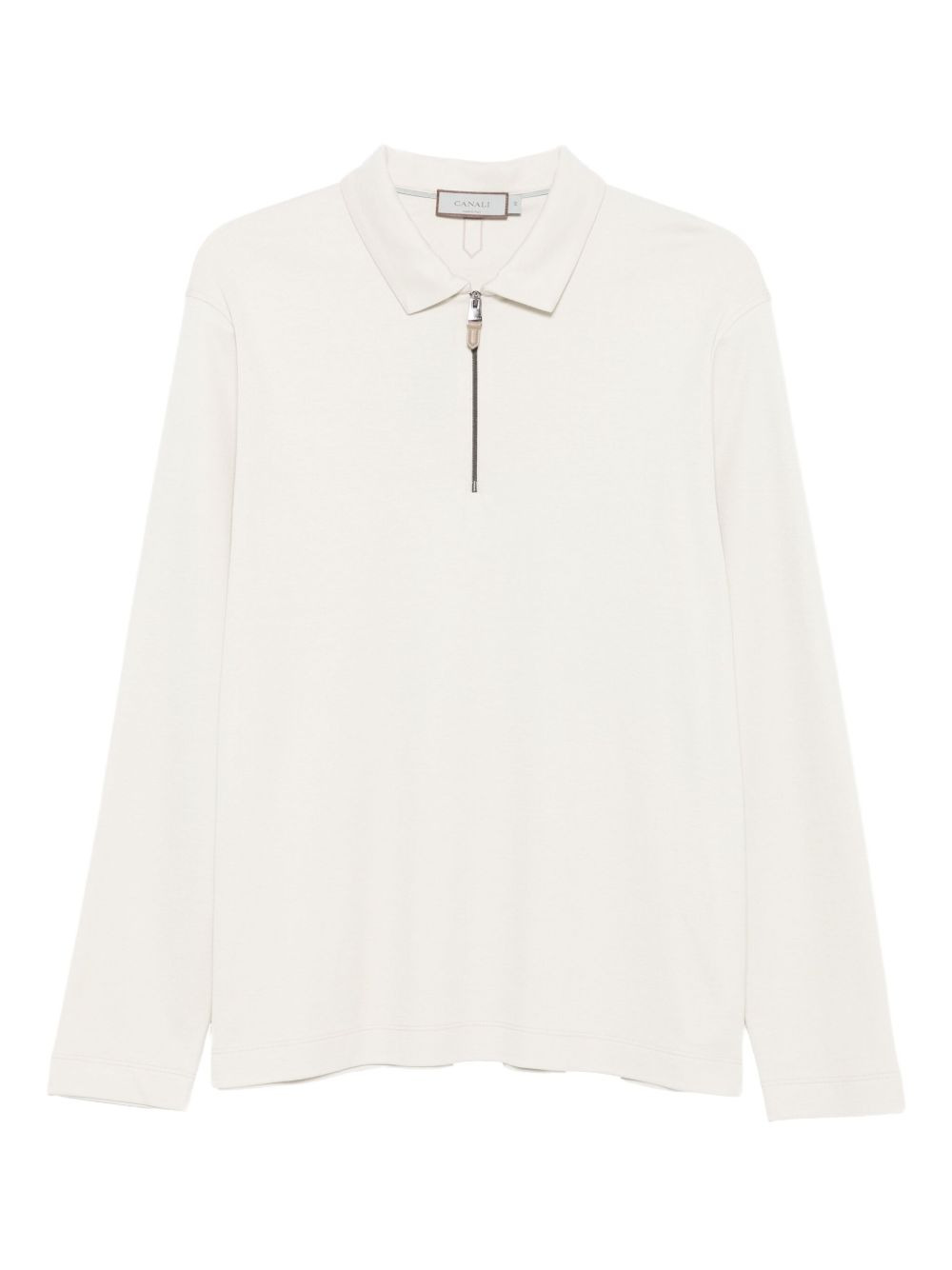 zip-neck polo sweater Highlights - Beige - Long sleeves - Polo collar - Half zip fastening - Straight hem Made in Italy Composition Cotton 65%, Lyocell 35% SIZE & FIT Model measurements Height 6 ft 1 in(1.85 m) Bust/Chest 35.82 in(91 cm) Hips 37.79 in(96 cm) Waist 29.13 in(74 cm) Washing instructions Machine Wash