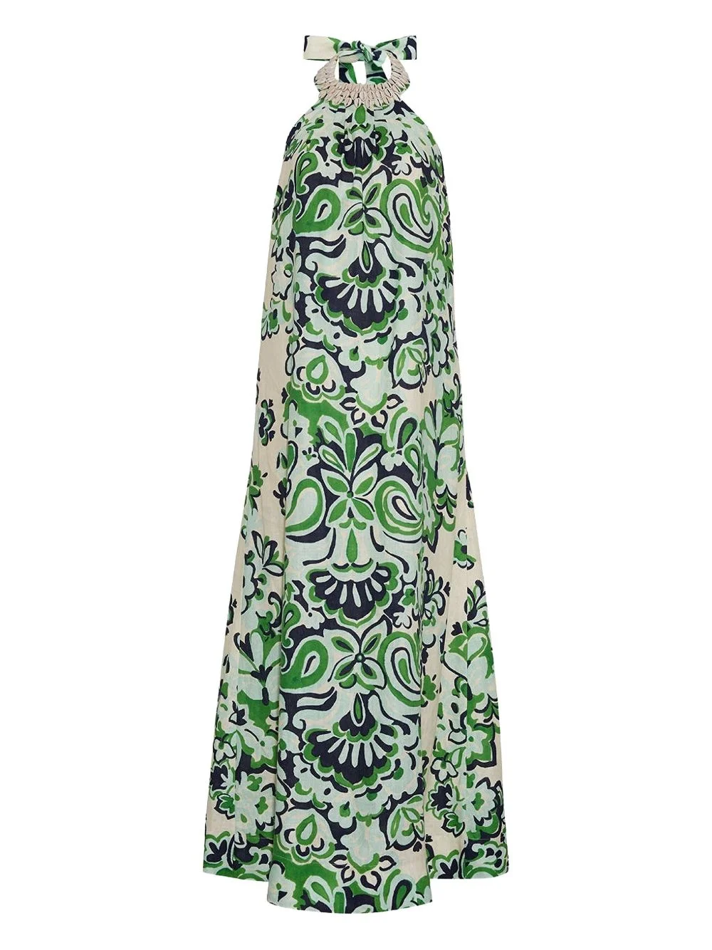Aimee halter-neck paisley print maxi dress Highlights - Light beige and green - Paisley print - Halter neck - Open back - Beaded neckline - Side pockets Imported Composition Cotton 100% Washing instructions Dry Clean Only