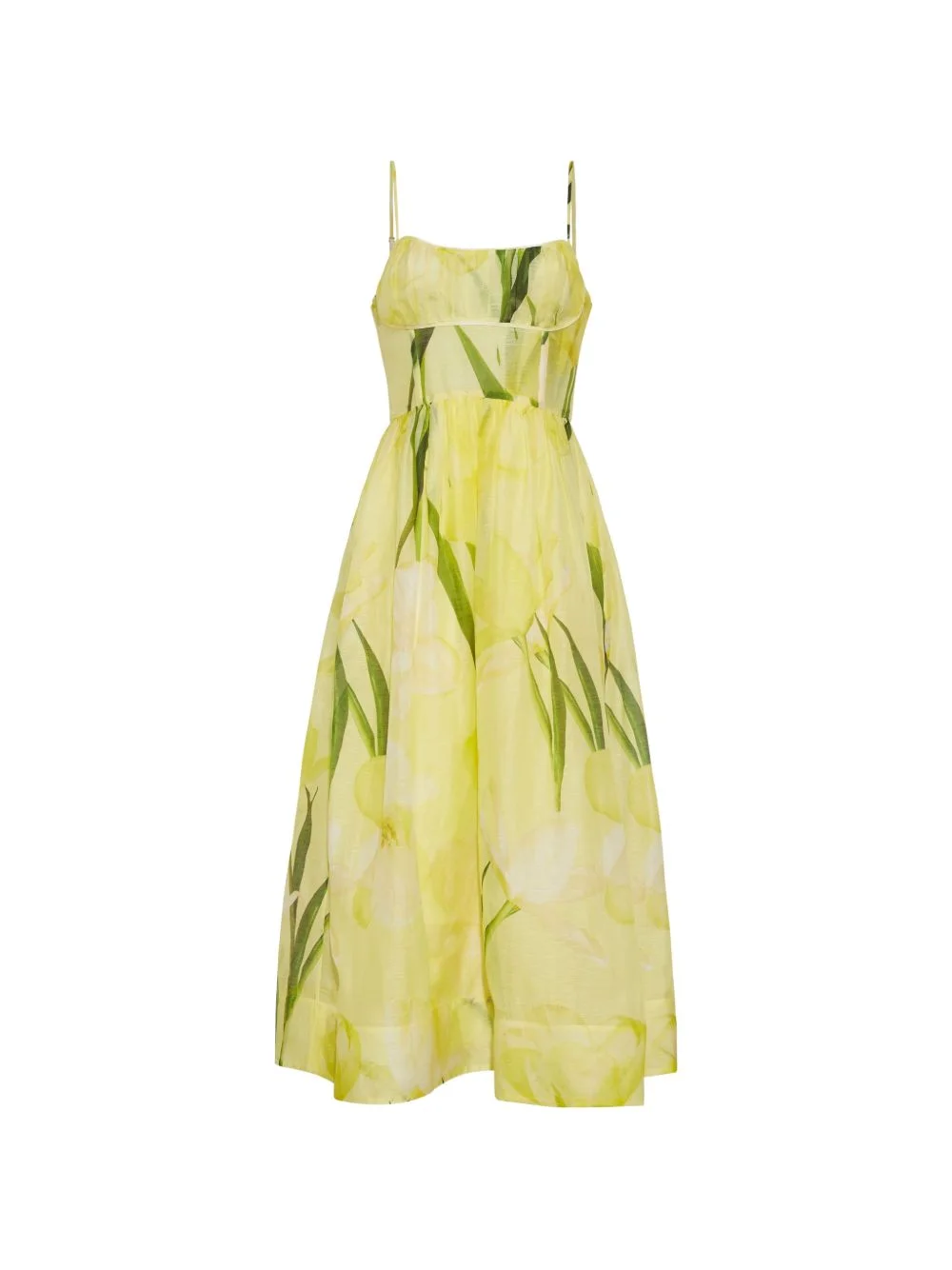 Alba floral-print midi dress Highlights - Yellow - Floral print - Sleeveless - Thin straps - Tiered skirt - Zip fastening Imported Composition Silk 52%, Linen/Flax 48% Washing instructions Dry Clean Only