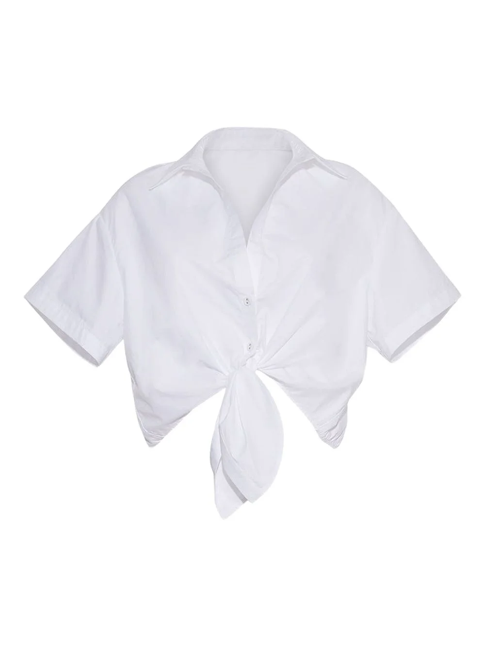 Asbury tied shirt Highlights - White - Cotton poplin - Short sleeves - Button fastening - Tie fastening - Wingtip collar - Cropped hem Imported Composition Cotton 100% Washing instructions Hand Wash