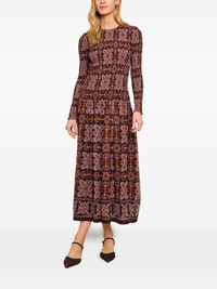 Blossom floral-print long-sleeve dress Highlights - Burgundy red - Mosaic floral pattern - Long sleeves - Round neck - Long sleeves - A-line silhouette - Straight hem Imported Composition Viscose 100% Washing instructions Hand Wash