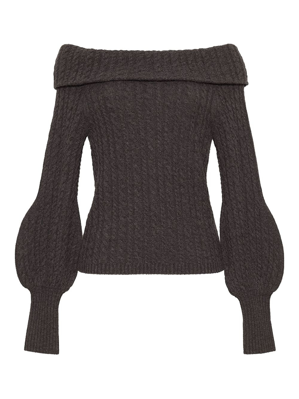 cable-knit off-the-shoulder sweater Highlights - Charcoal grey - Cable knit - Off-the-shoulder neckline - Long sleeves - Balloon sleeves Imported Composition Wool 70%, Cashmere 30% Washing instructions Read Manufacturer Guidelines