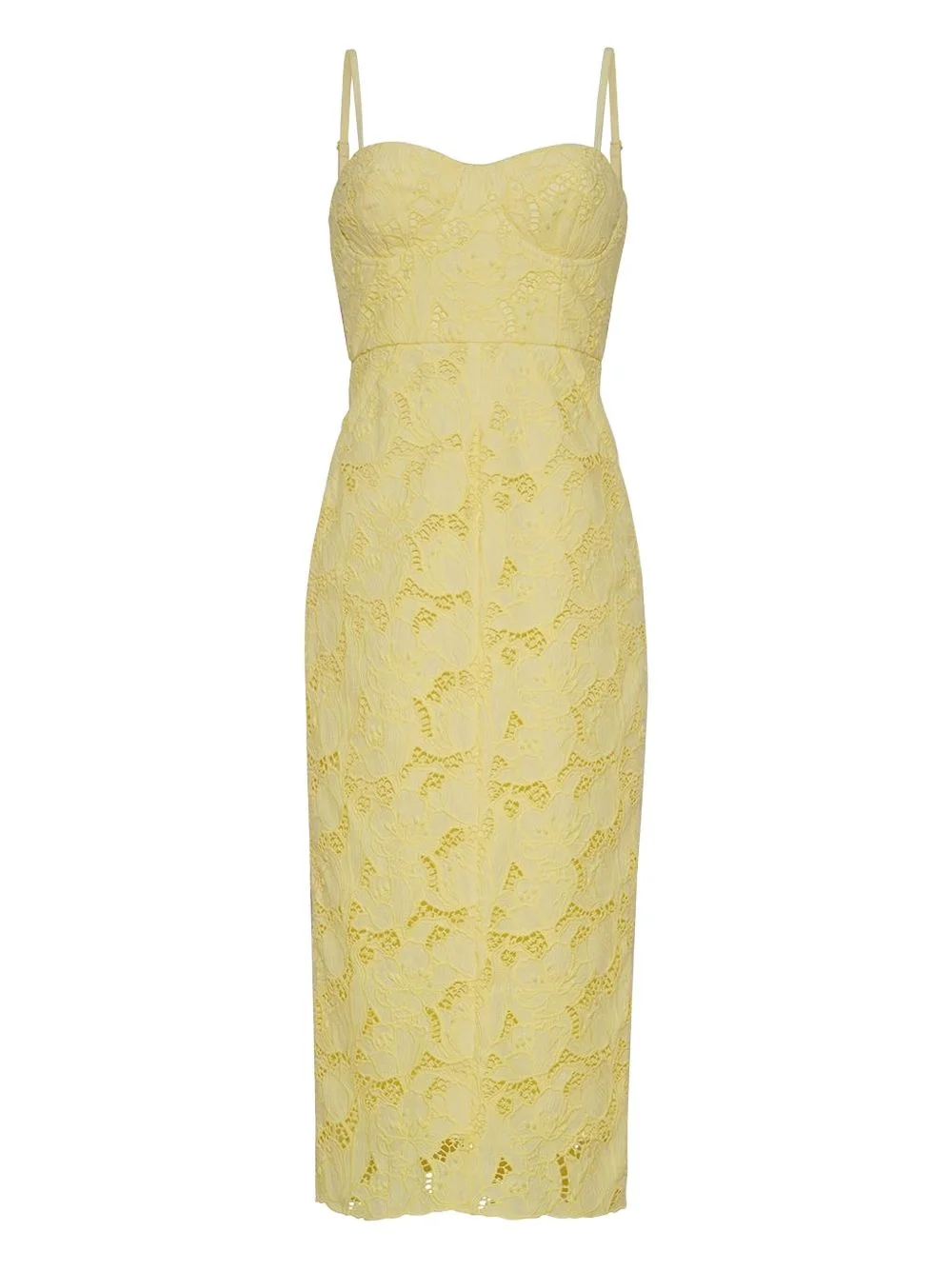Camille midi dress Highlights - Yellow - Floral lace - Scallop hem - Spaghetti straps - Concealed zip fastening Imported Composition Cotton 100% Washing instructions Read Manufacturer Guidelines