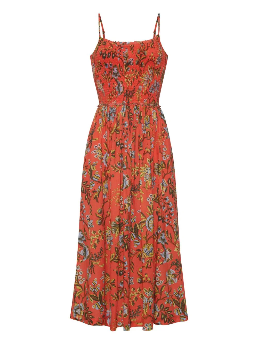 Carmen ruffled-trim smocked-panel midi dress Highlights - Orange - Floral print - Ruffled detail - Smocked panel - Sleeveless - Thin straps Imported Composition Cotton 100% Washing instructions Dry Clean Only