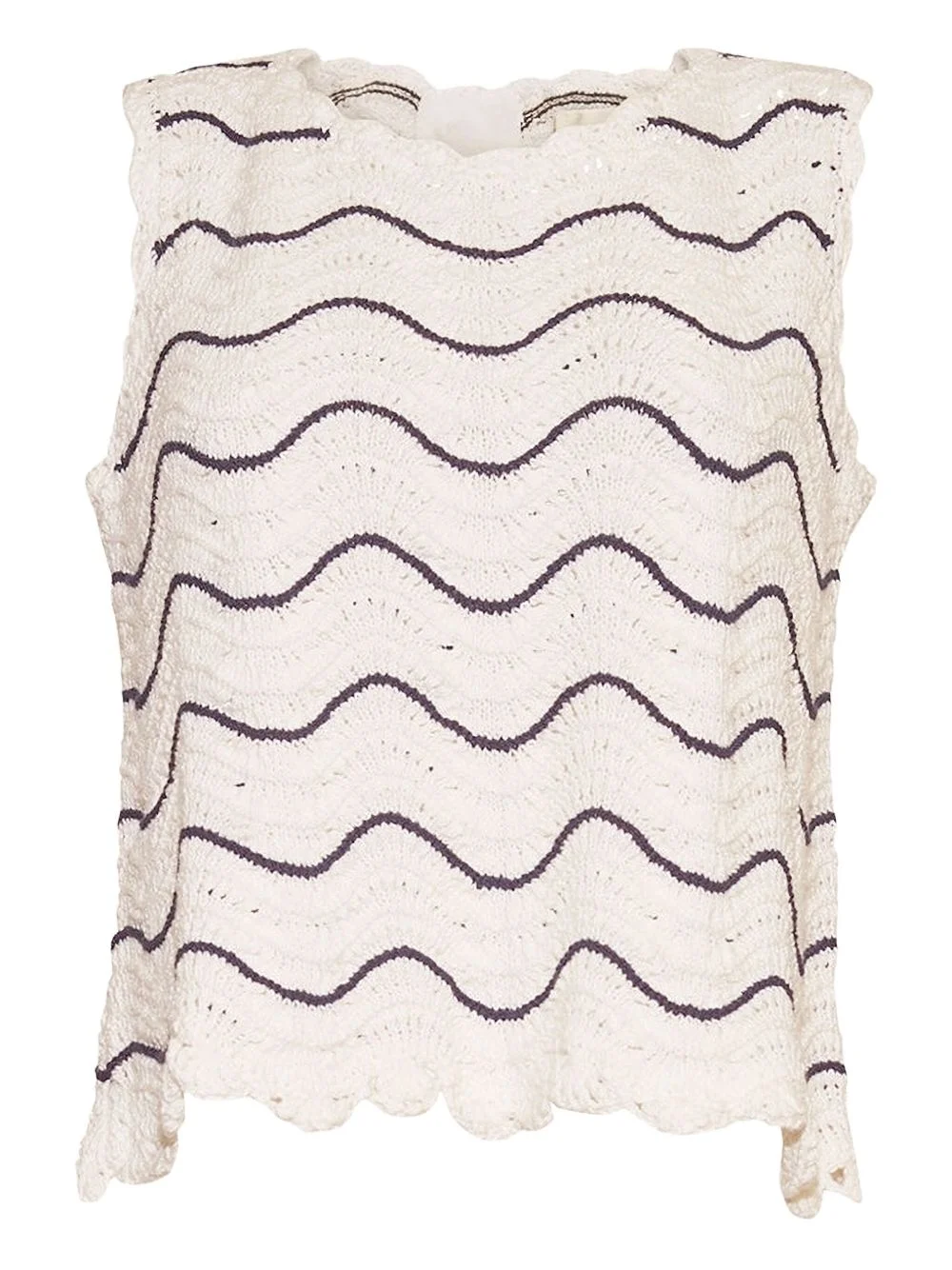 Casey top Highlights - White - Cotton - Rear zip fastening - Wave pattern - Sleeveless - Round neck - Scallop hem Imported Composition Cotton 100% Washing instructions Read Manufacturer Guidelines