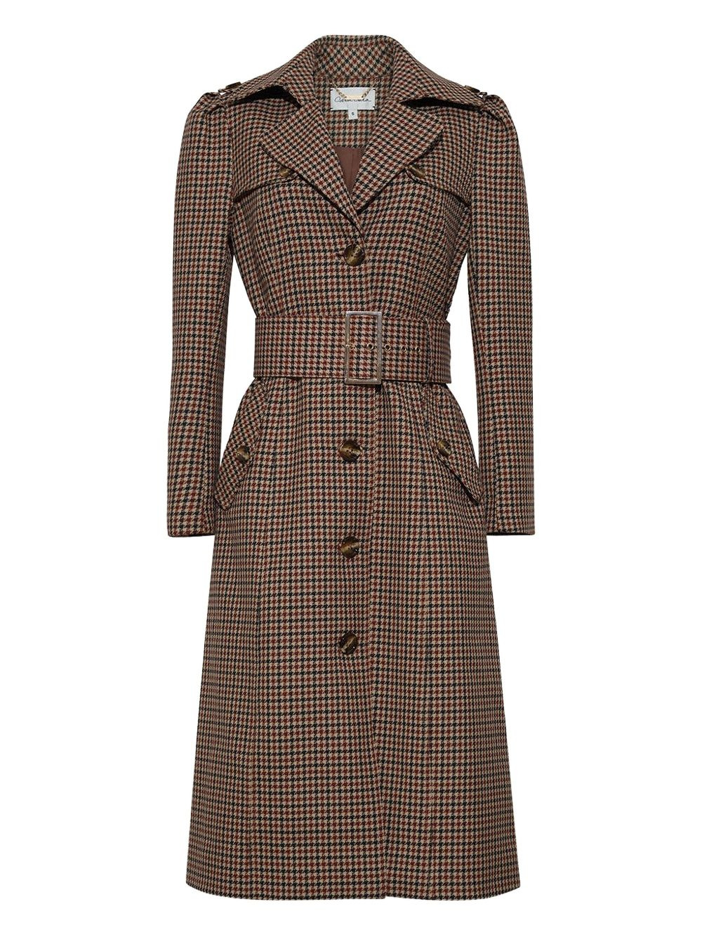 Charlie trench coat Highlights - Brown - Wool - Houndstooth pattern - Belted waist - Front button fastening - Side flap pockets - Long sleeves Imported Composition Wool 100% Washing instructions Read Manufacturer Guidelines