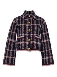 Delilah Cardigan Boxy and Bold in Plaid Jacquard and Gilded Detail