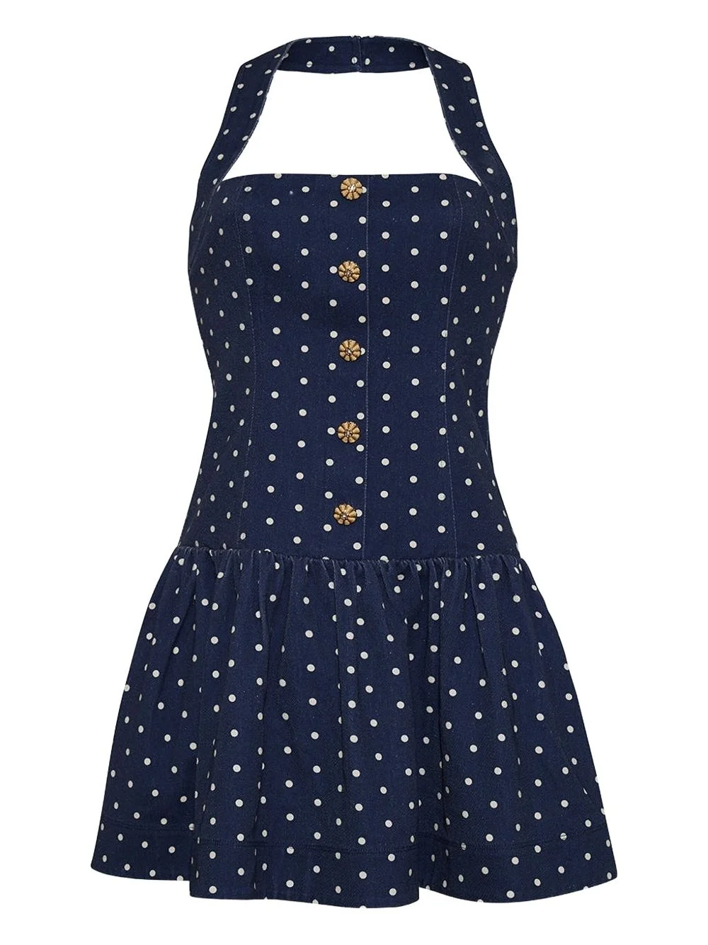 Felicity polka-dot buttoned mini dress Highlights - Navy blue - Polka dot pattern - Halter neck - Button front - Gathered skirt - Cotton Imported Composition Outer: Cotton 100% Lining: Cotton 100% Washing instructions Dry Clean Only