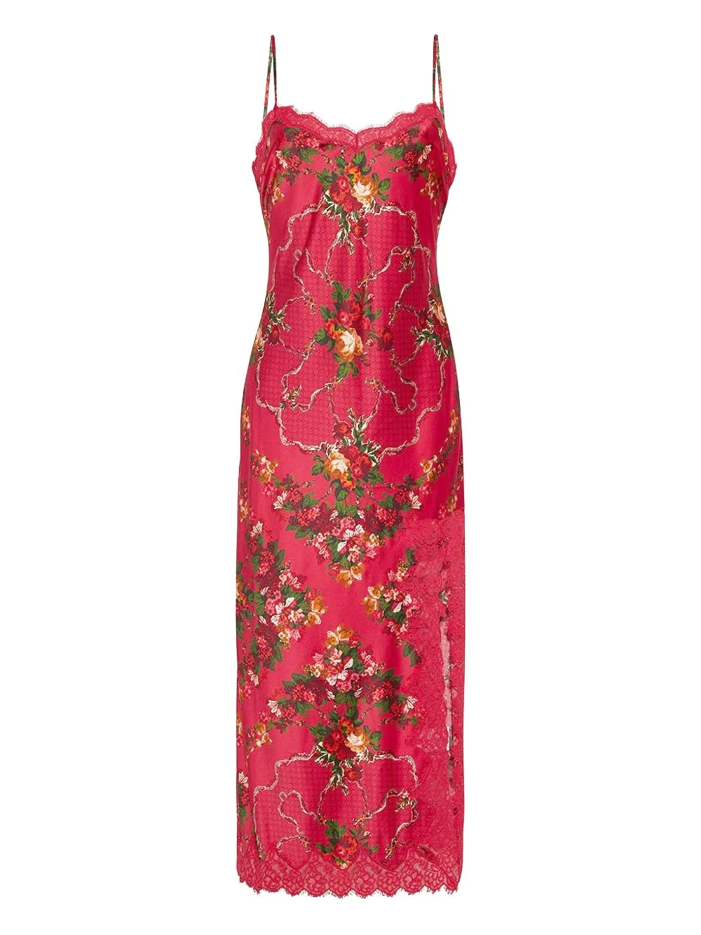 floral lace-trimmed slip dress Highlights - Red - Floral print - Silk blend - Lace trim - Spaghetti straps - Side split Imported Composition Polyester 100%, Silk 92%, Spandex/Elastane 8% Washing instructions Read Manufacturer Guidelines