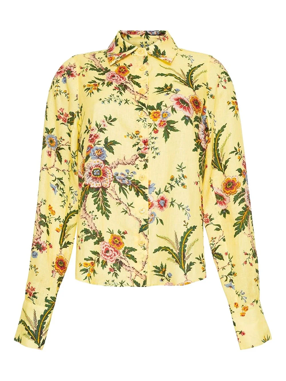 floral-print linen shirt Highlights - Pale yellow - Floral pattern - Long sleeves - Button fastening - Collared neck Imported Composition Linen/Flax 100% Washing instructions Read Manufacturer Guidelines