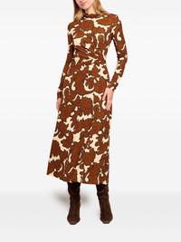 floral-print turtleneck dress Highlights - Chocolate brown - Floral pattern - Turtleneck - Long sleeves - Ruched bodice - A-line skirt Imported Composition Viscose 93%, Spandex/Elastane 7% Washing instructions Read Manufacturer Guidelines